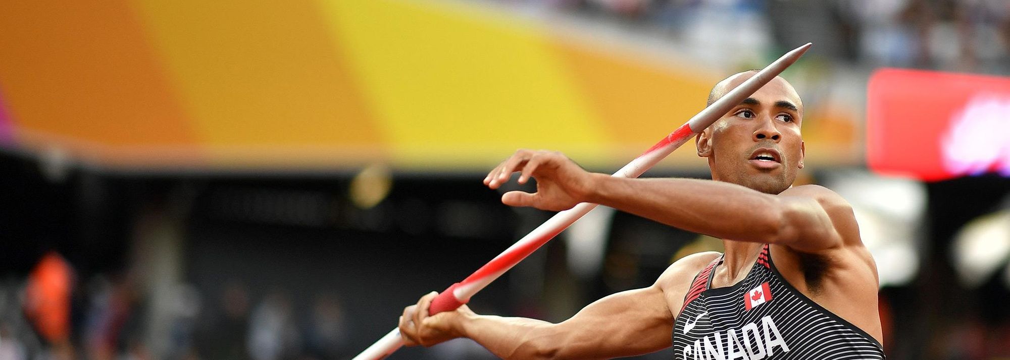 Damian Warner in the decathlon javelin at the IAAF World Championships London 2017 (© AFP / Getty Images)