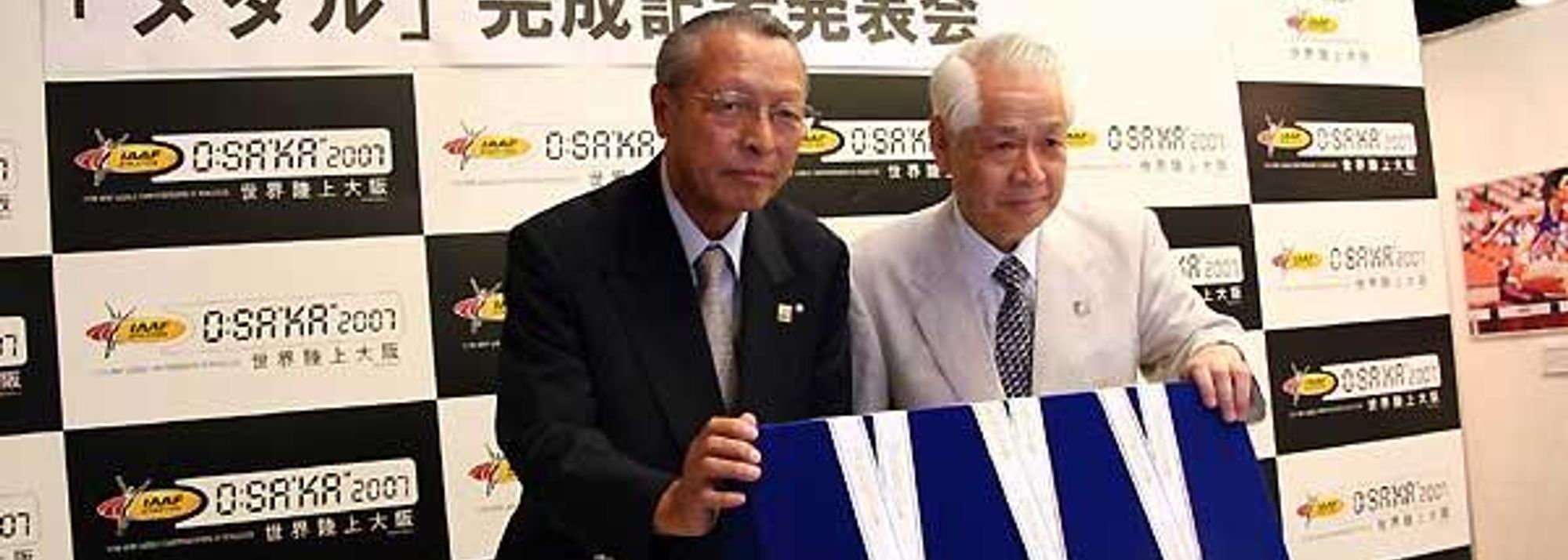 At 3pm on Friday 6 July, at the Crysta Nagahori, Osaka, Koji Sakurai, Vice President & Managing Director, Japan Association of Athletics Federations, along with Hiromasa Hemmi, the General Secretary of the Osaka Local Organising Committee had the honour to unveil the championship Medals to the world (see photo, above right).