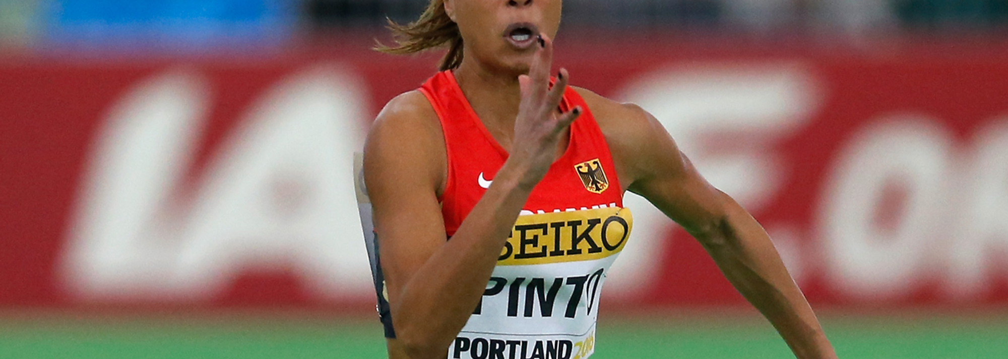 Tatjana Pinto in the 60m at the IAAF World Indoor Championships (© Getty Images)