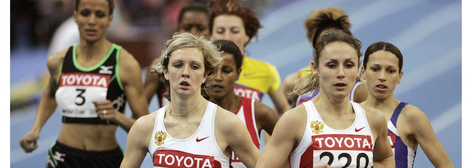 left to right - Yelena Soboleva and Yulia Fomenko (then Chizhenko) compete at the 2006 World Indoor Championships (© AFP / Getty Images)