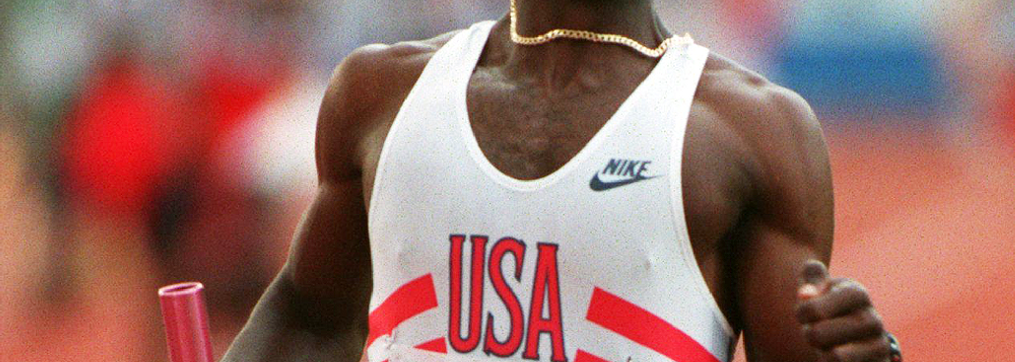 Michael Johnson in the 4x400m at the 1993 IAAF World Championships in Stuttgart (© Getty Images)