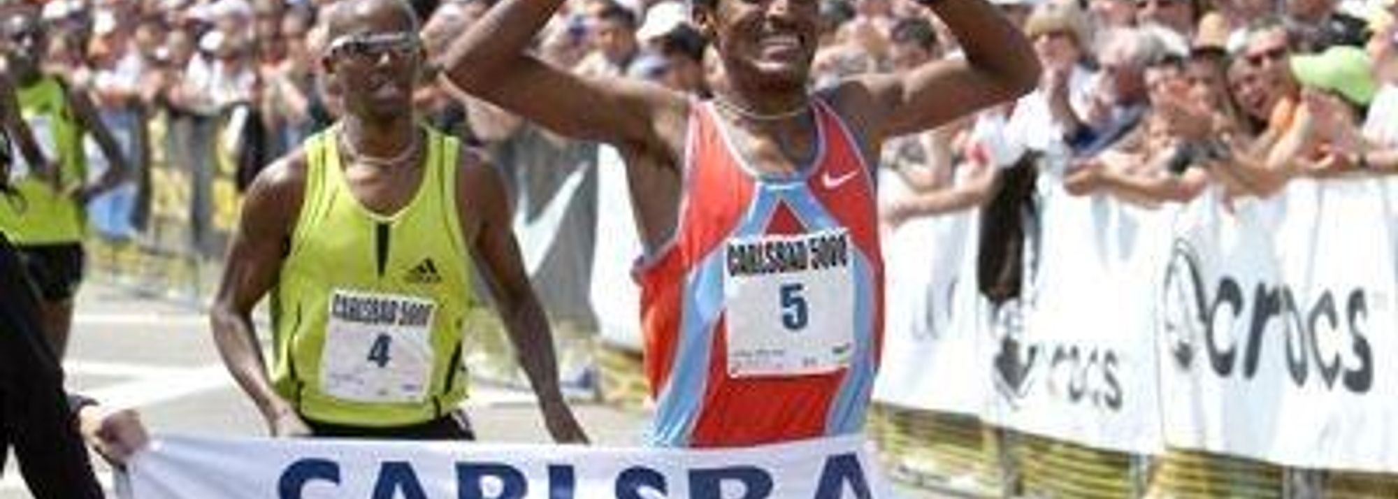 Terefe Marego Zewdie holds off Mo Farah in 2008 Carlsbad 5000 (© Victah Sailer)