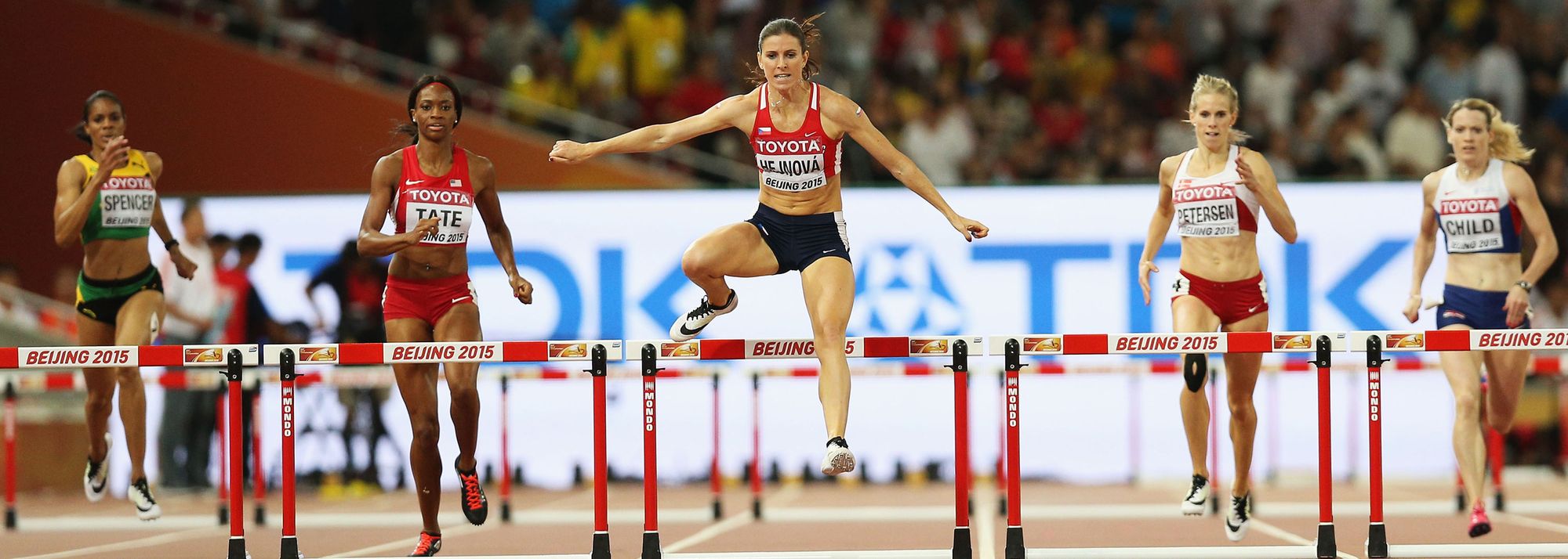 Zuzana Hejnova on her way to winning the 400m hurdles at the World Championships, Beijing 2015 (© Getty Images)