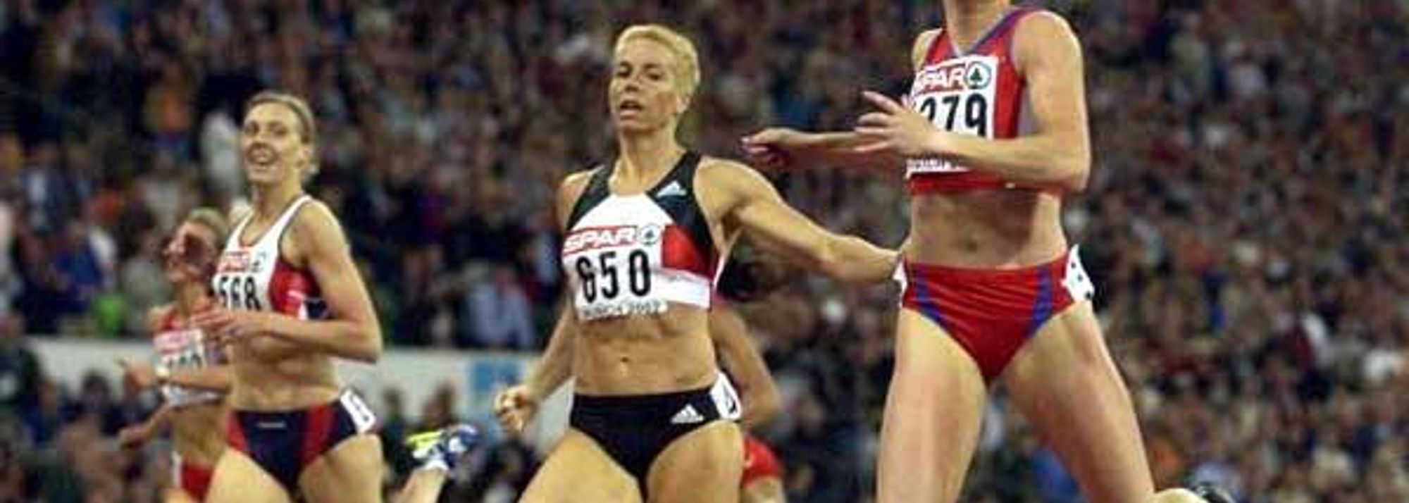 Olesya Zykina (right) wins the 2002 European 400m title (© Getty Images)