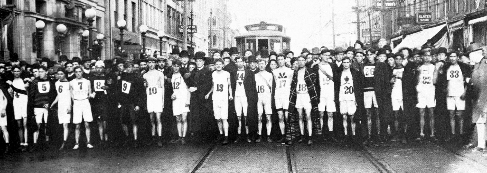 The Around the Bay Road Race established Hamilton as a running mecca for long distance runners, and it was not uncommon for thousands of spectators to line the route to watch their local favourites start the race from the front of the Herald Newspaper Offices at 17 King Street West Hamilton.