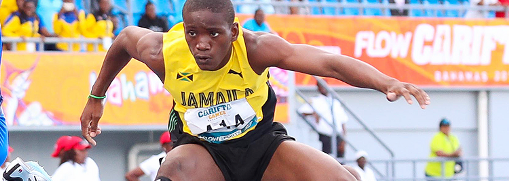Rovane Williams on his way to winning the 400m hurdles at the Carifta Games (© Leo Hudson)