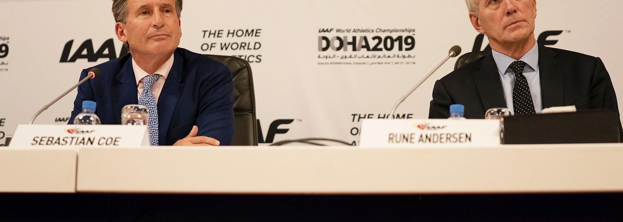 IAAF President Sebastian Coe and Russia Taskforce chair Rune Andersen in Doha (© Matthew Quine)