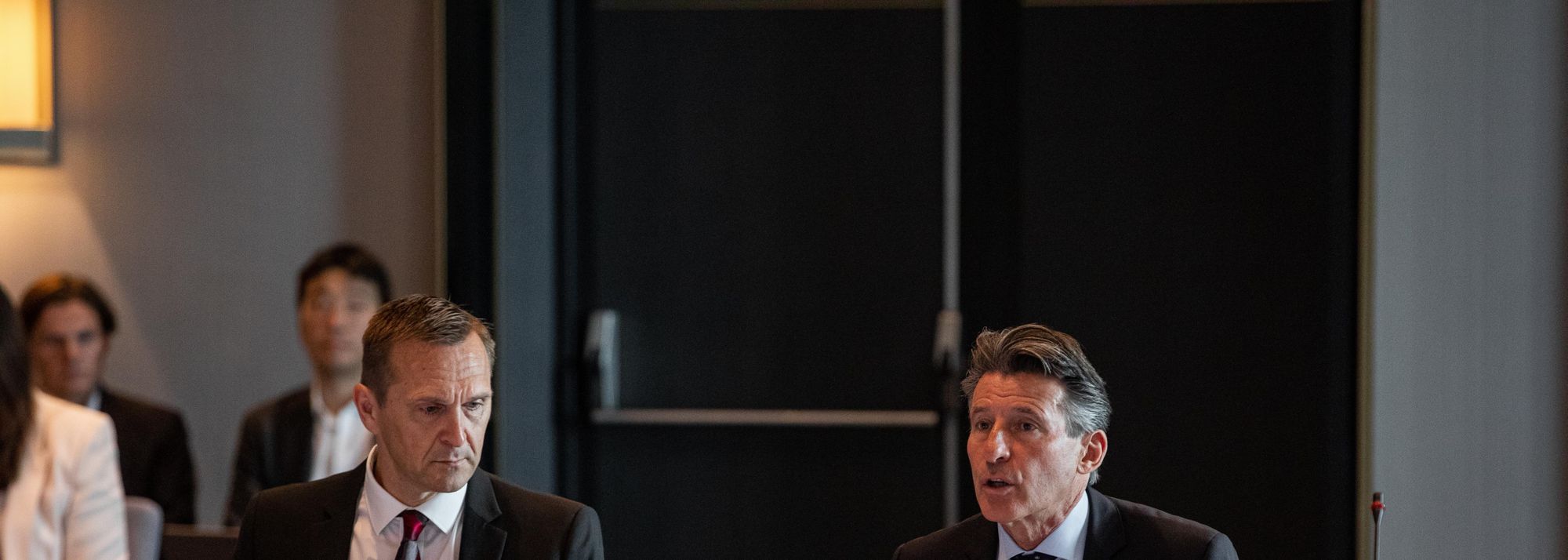 IAAF CEO Jon Ridgeon and IAAF President Sebastian Coe at the IAAF Council Meeting in Monaco (© Philippe Fitte)