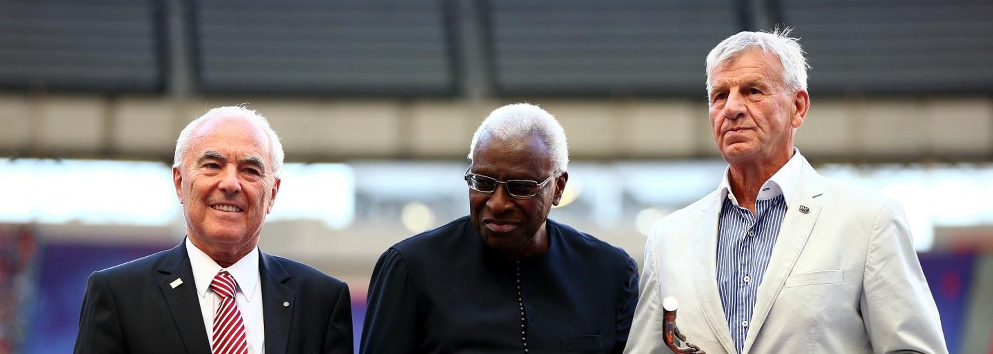 President of the International Fair Play Committee Jeno Kumati, IAAF President Lamine Diack and Igor Ter-Ovanesyan (© Getty Images)