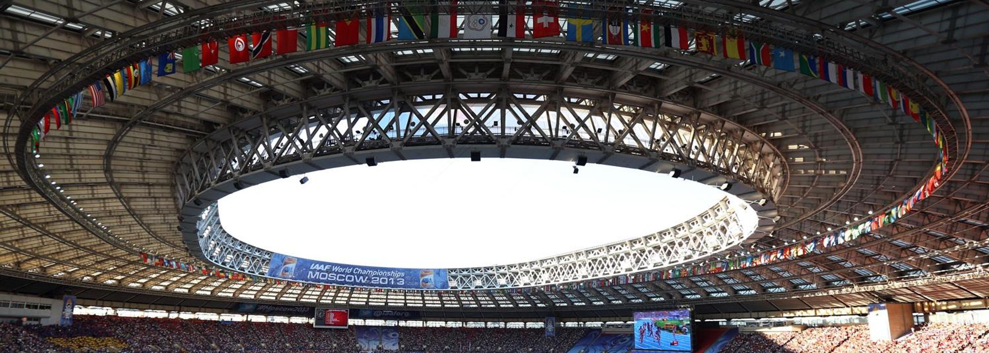 Pour Moscou 2013, le vaste stade des Jeux olympiques de 1980, qui a une capacité totale de plus de 80 000 spectateurs, a été reconfiguré pour en accueillir 50 000 pour les quatre séances en semaine, et davantage encore pour les séances des week-ends d'ouverture et de clôture.