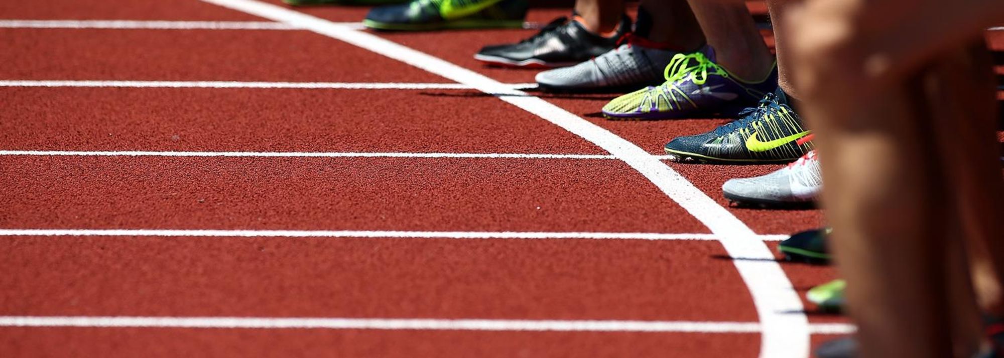 Athletes on the start line at Hayward Field in Eugene, USA (© Getty Images)