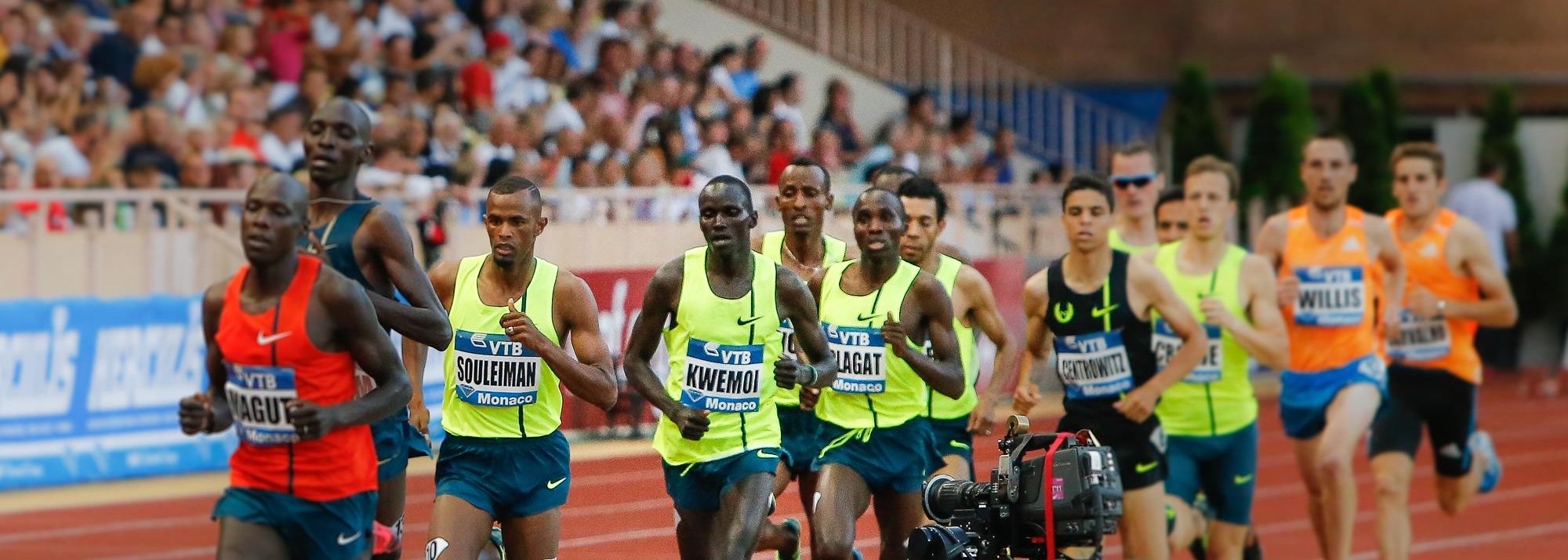 Ronald Kwemoi en route to setting a world junior 1500m record at the 2014 IAAF Diamond League meeting in Monaco (© Philippe Fitte)