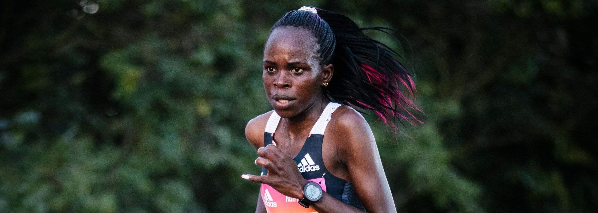 The 26-year-old Kenyan, who won the world half marathon title in 2016, was paced through the first five kilometres in about 15:20. She broke away from the rest of the lead pack just a few minutes later and reached 10km in 30:32.