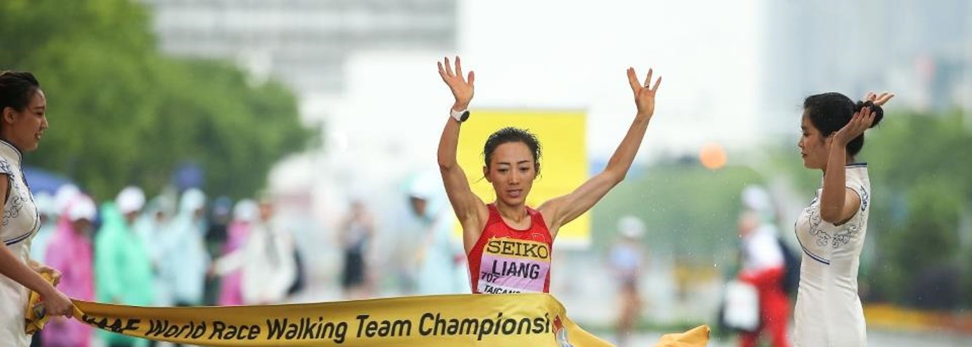 Liang Rui wins the women's 50km race walk at the IAAF World Race Walking Team Championships Taicang 2018 (© Getty Images)