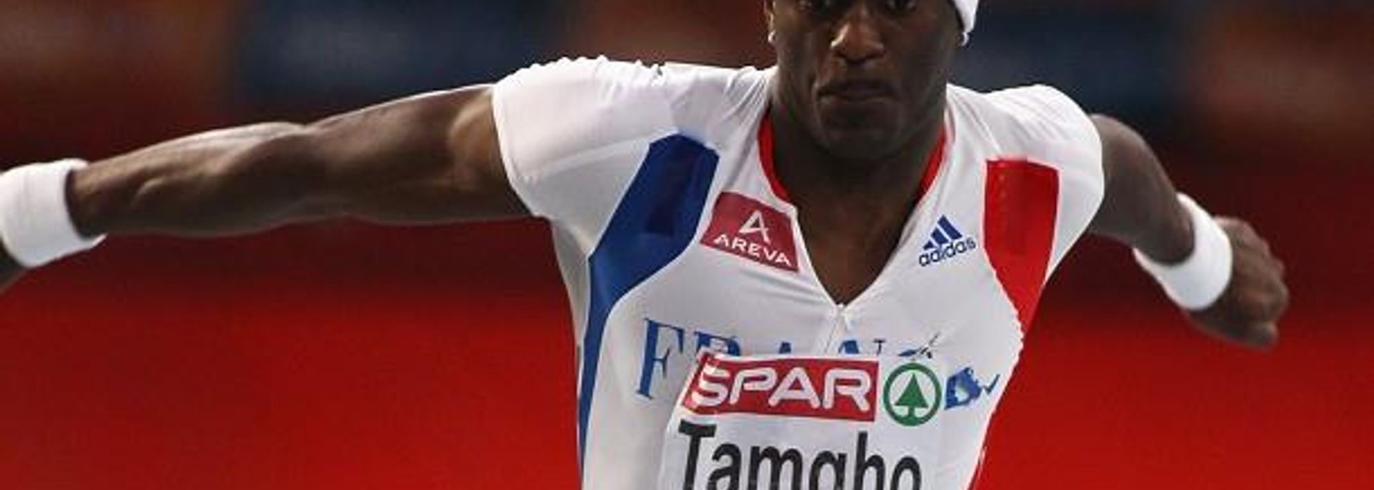 Teddy Tamgho en route to one of his 17.92m World records in Paris (© Getty Images)