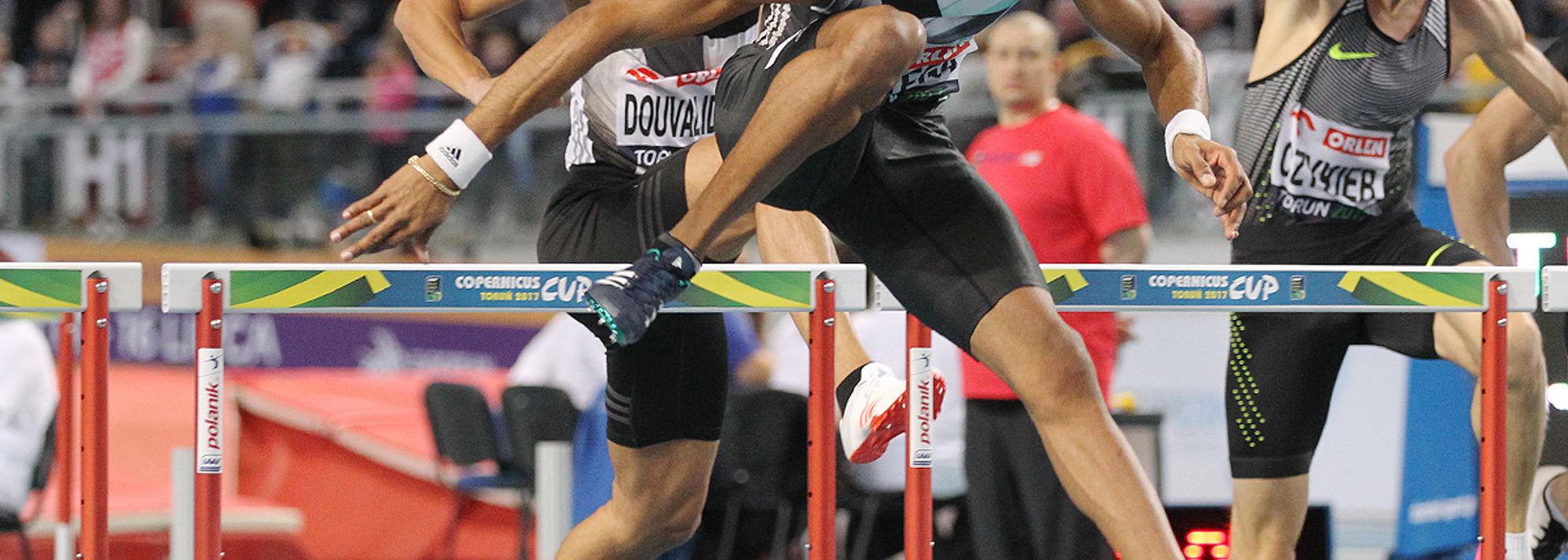 Orlando Ortega wins the 60m hurdles at the IAAF World Indoor Tour meeting in Torun (© Jean-Pierre Durand)