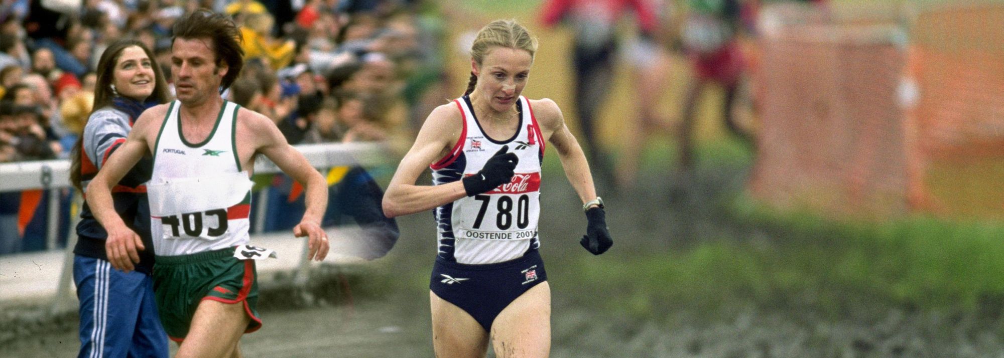 Carlos Lopes and Paula Radcliffe in World Cross Country Championships action (© Getty Images)