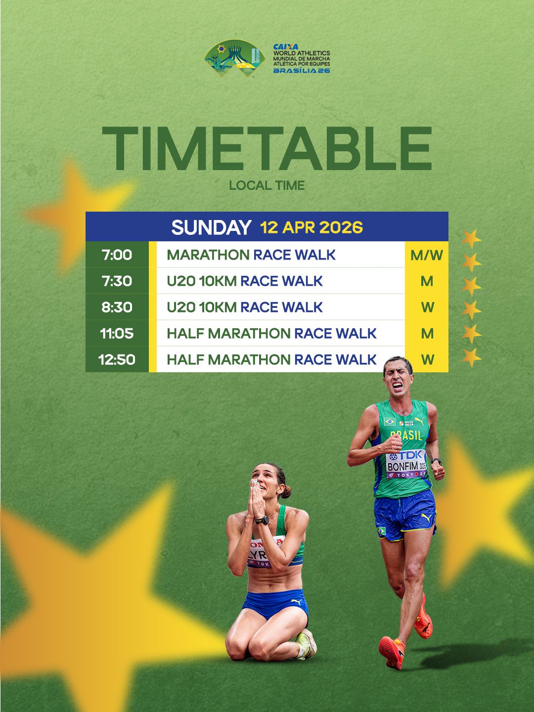 • World Athletics Race Walking Team Championships Brasilia 26 (12 April)