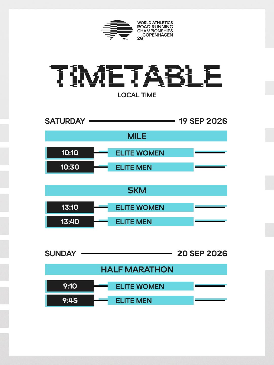• World Athletics Road Running Championships Copenhagen 26 (19-20 September)
