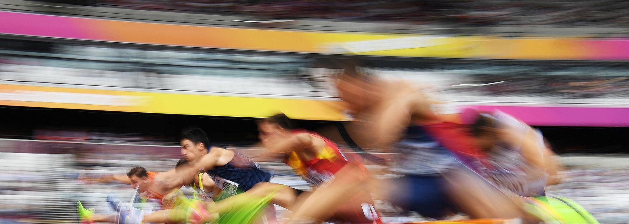 Athletes in action in the 110m hurdles at the IAAF World Championships (© AFP / Getty Images)