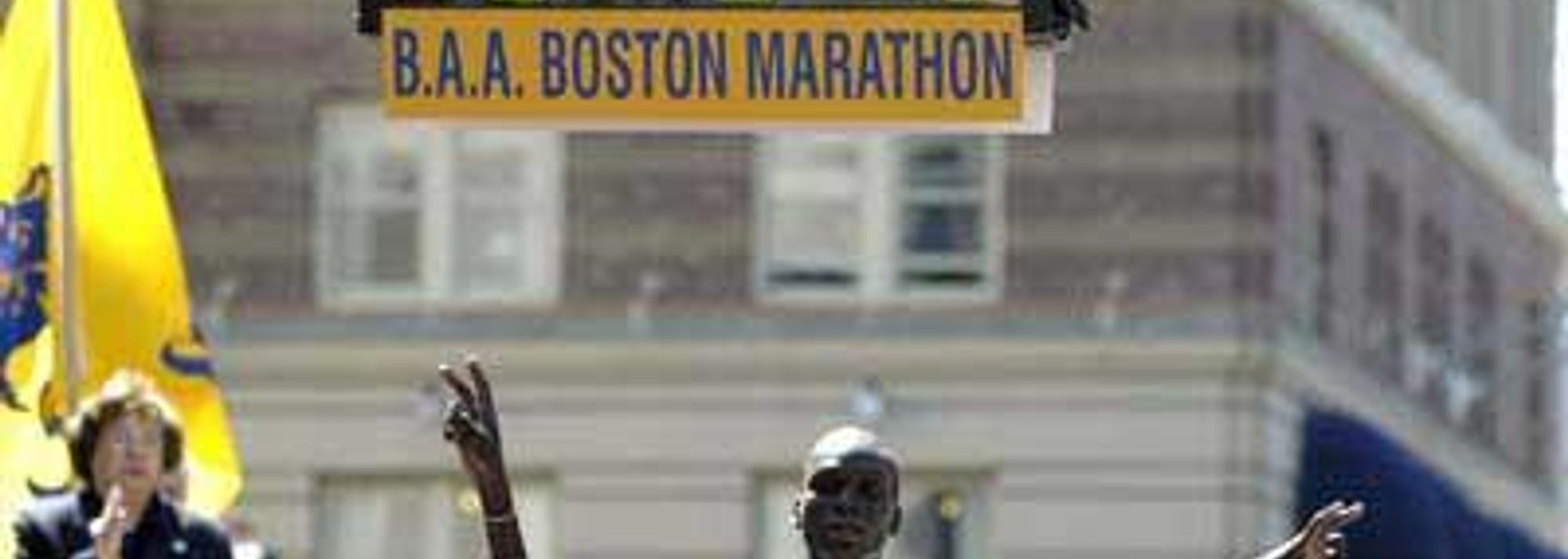 Robert Cheruiyot wins 2003 Boston Marathon, (© photo by Vinny Dusovic)