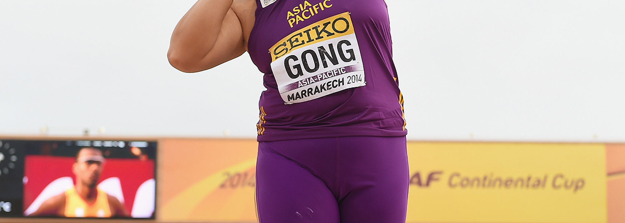 Gong Lijiao in the shot put at the IAAF Continental Cup Marrakech 2014 (© Getty Images)