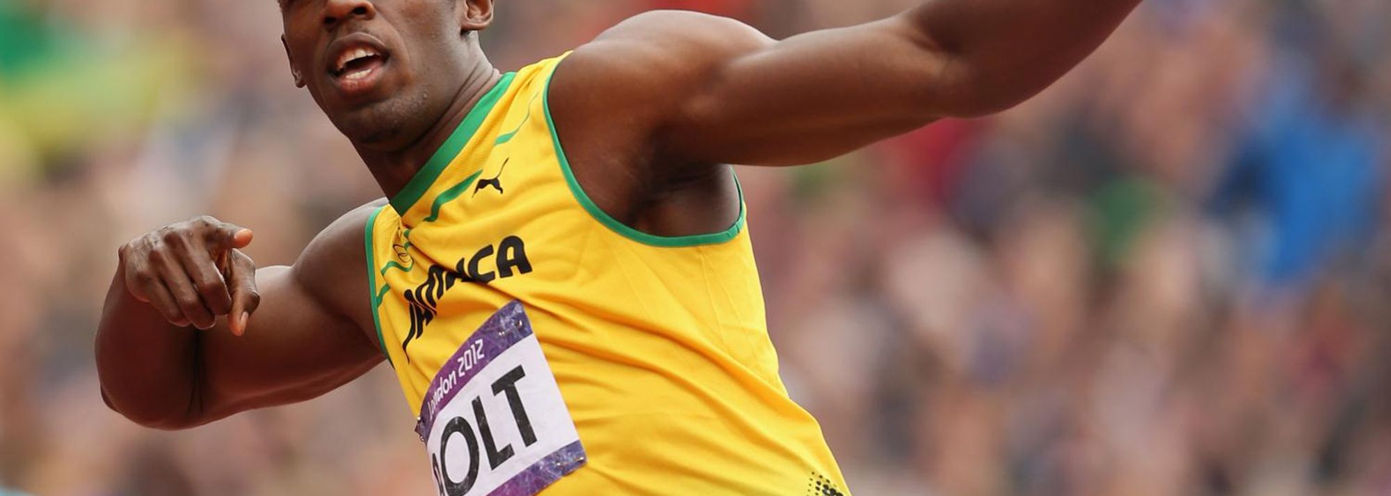 Usain Bolt getting enthusiastic after the Men's 200m Round 1 Heats, London 2012 Olympic Games on August 7, 2012 (© Getty Images)