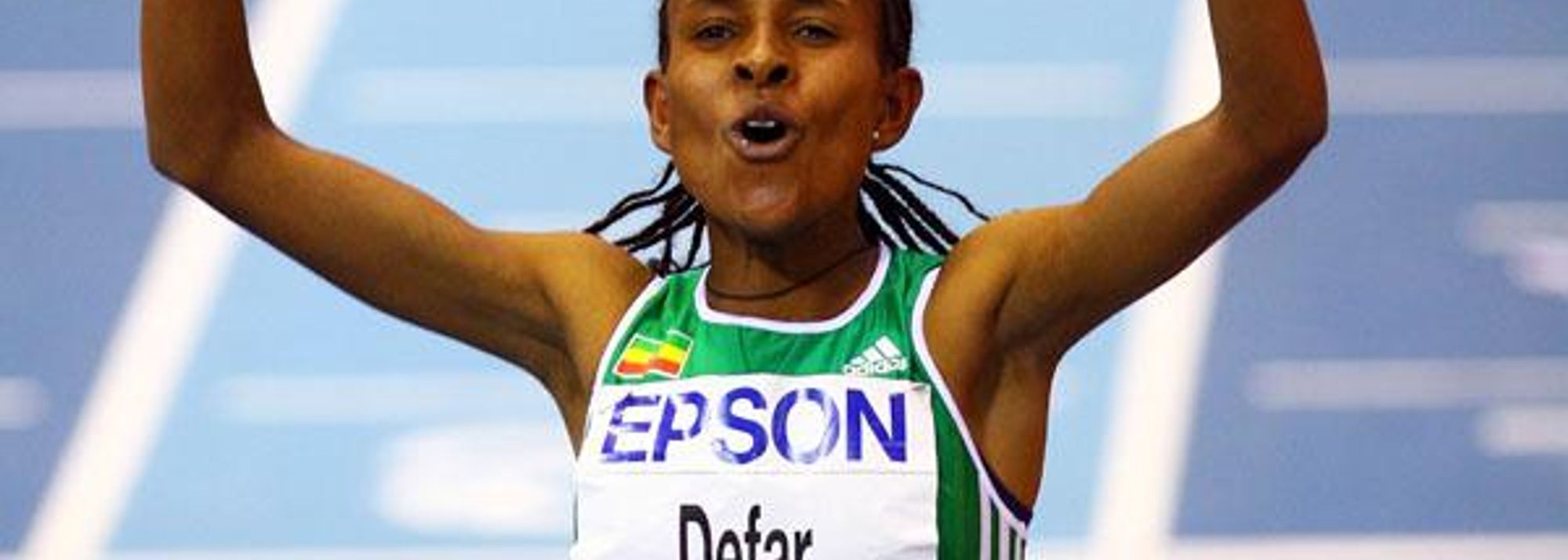 Meseret Defar crosses the finish line in first place (© Getty Images)