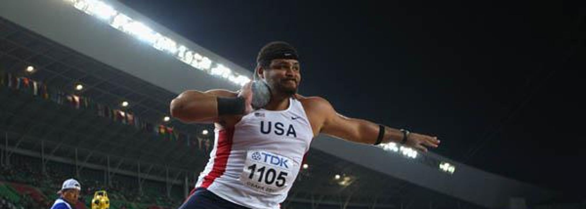 Reese Hoffa on his way to Shot Put gold in Osaka (© Getty Images)