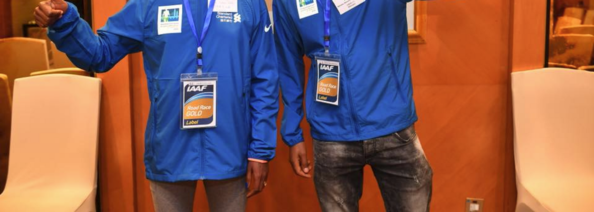Defending champions Gulume Tollesa and Melaku Belachew ahead of the Hong Kong Marathon (© Organisers)