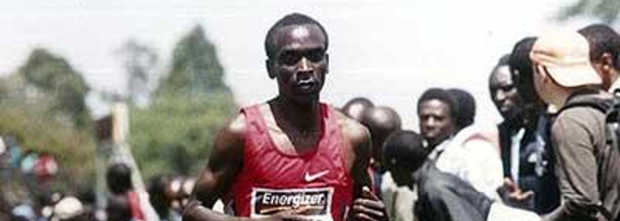 Eliud Kipchoge in full flow in the 2004 Kenyan XC champs (© Njenga)