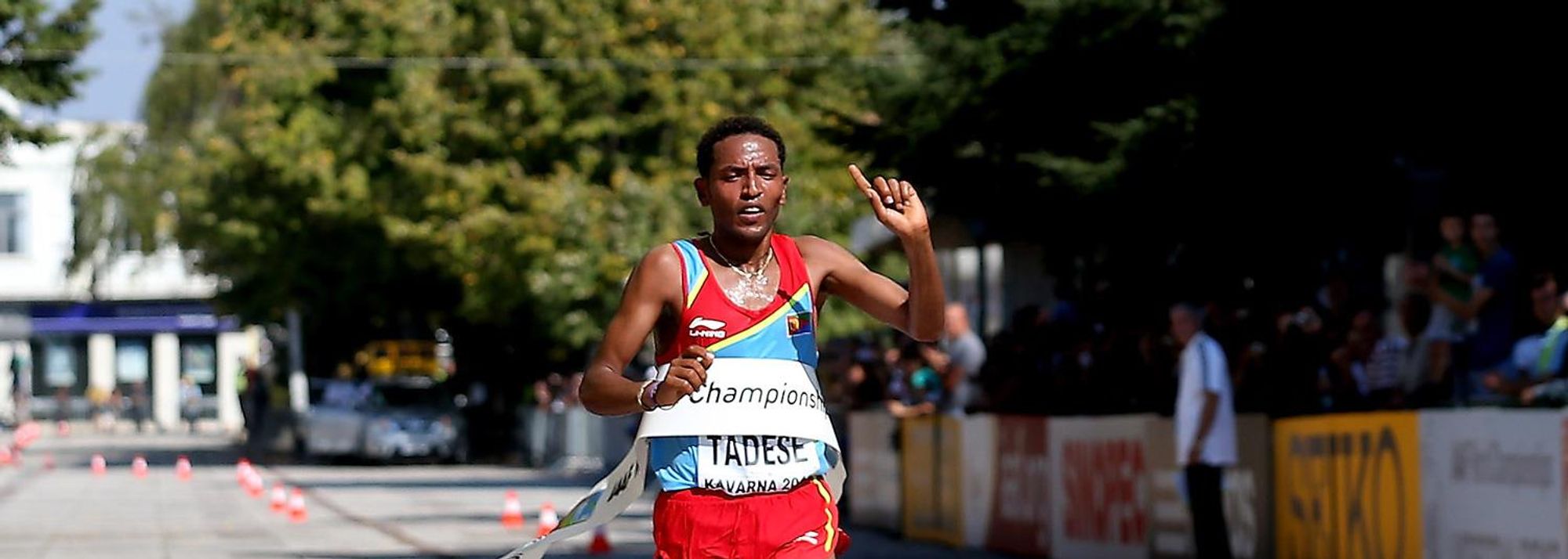 Zersenay Tadese winning at the 2012 IAAF World Half Marathon Championships (© Getty Images)