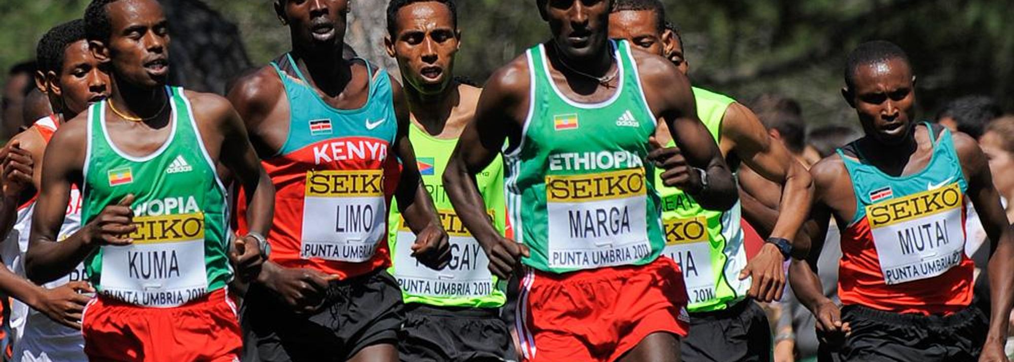 Imane Merga on his way to gold at the 2011 World Cross Country Championships (© Getty Images)