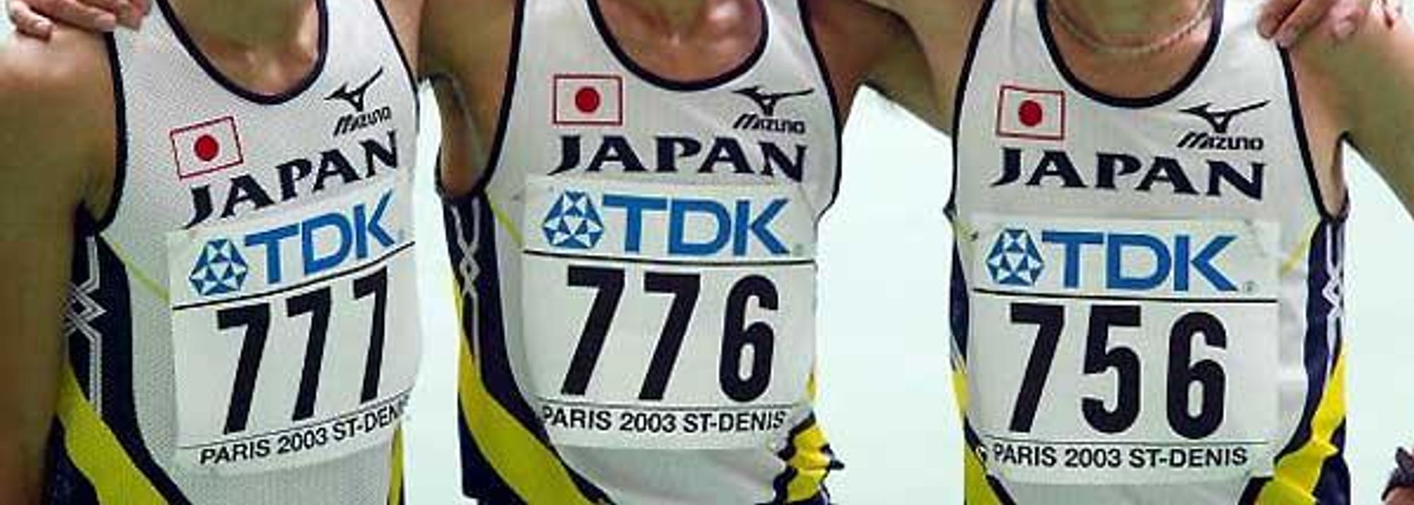 (L-R) Atsushi Sato, Tsuyoshi Ogata, Shigeru Aburaya of Japan at the 2003 World Championships (© Getty Images)