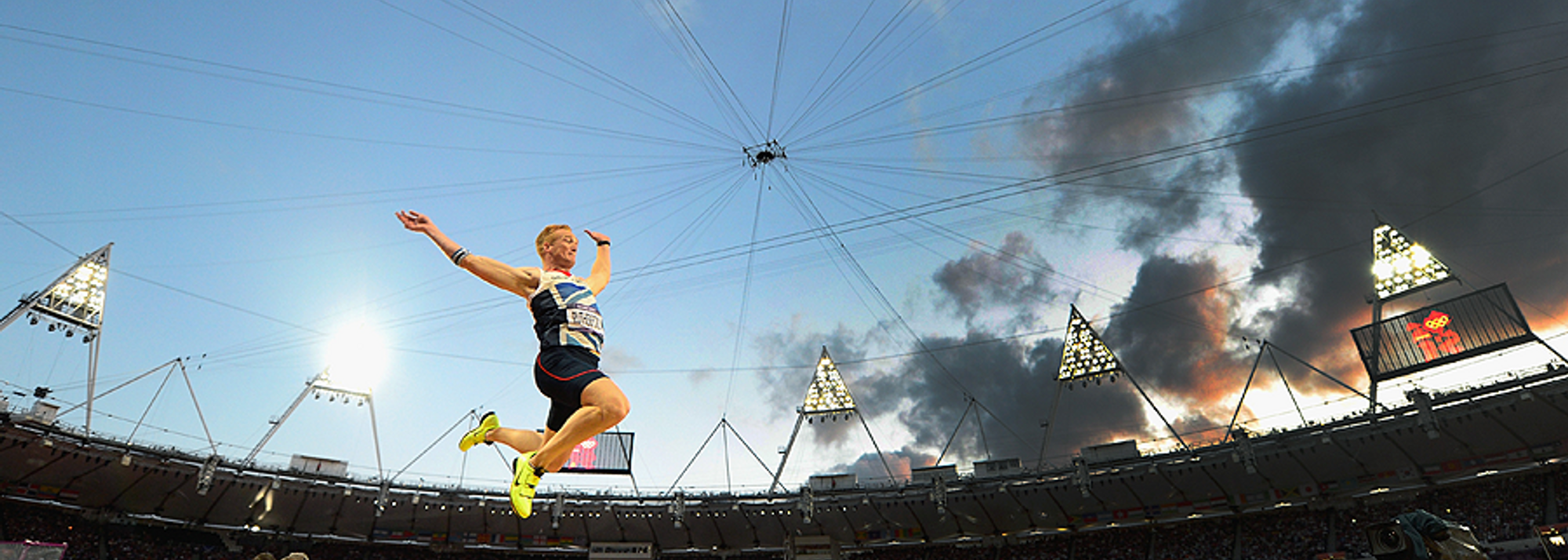 Greg Rutherford in the long jump at the London 2012 Olympic Games (© Getty Images)