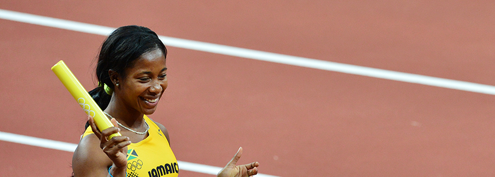 Shelly-Ann Fraser-Pryce in the 4x100m at the London 2012 Olympic Games (© AFP / Getty Images)