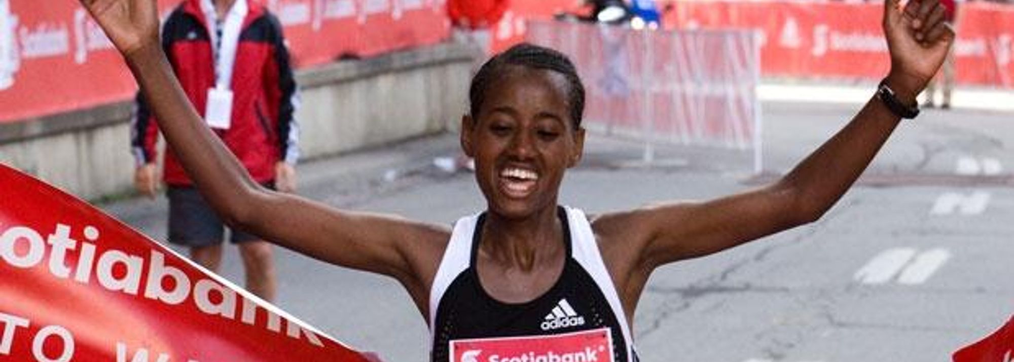 Mulu Seboka breaks the course record at the Scotiabank Toronto Waterfront Marathon (© Race organisers)