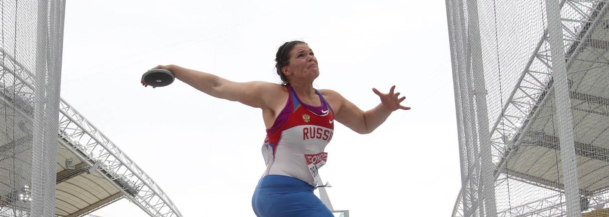 Darya Pishchalnikova of Russia competes in the women's discus throw qualification round (© Getty Images)
