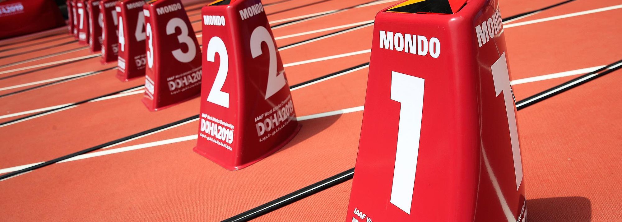 Lane markers in Khalifa International Stadium, venue of the IAAF World Athletics Championships Doha 2019 (© Getty Images)
