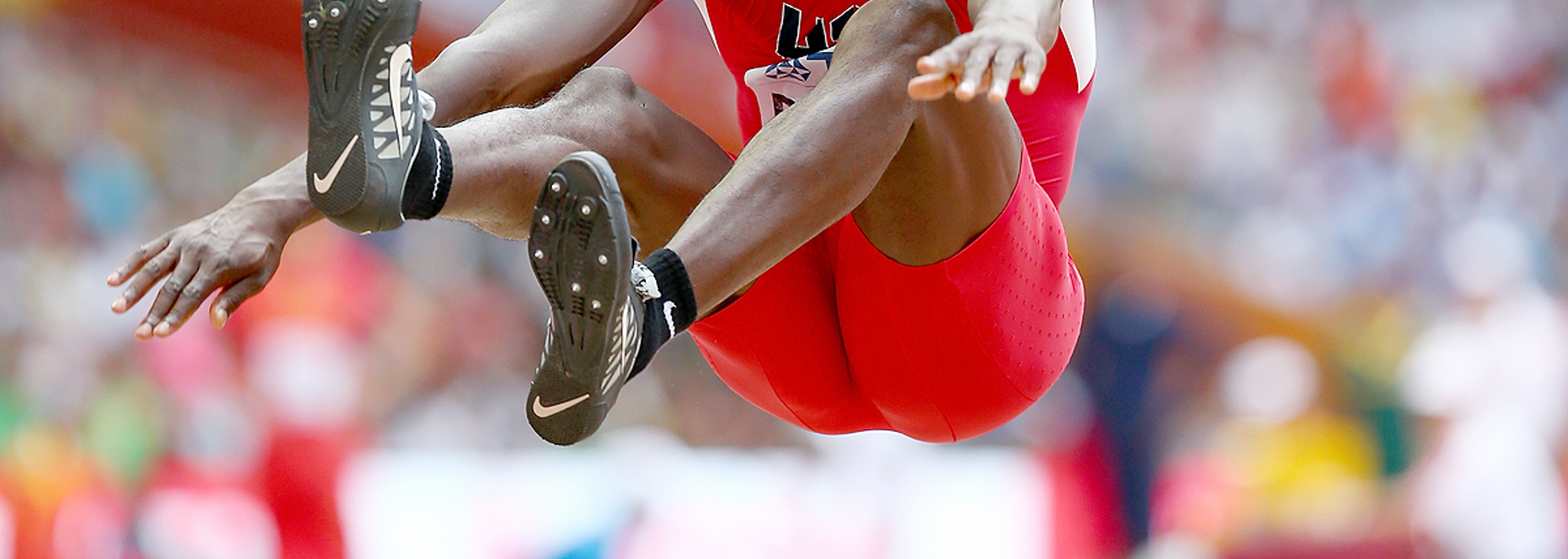 Marquis Dendy in the long jump at the IAAF World Championships (© Getty Images)