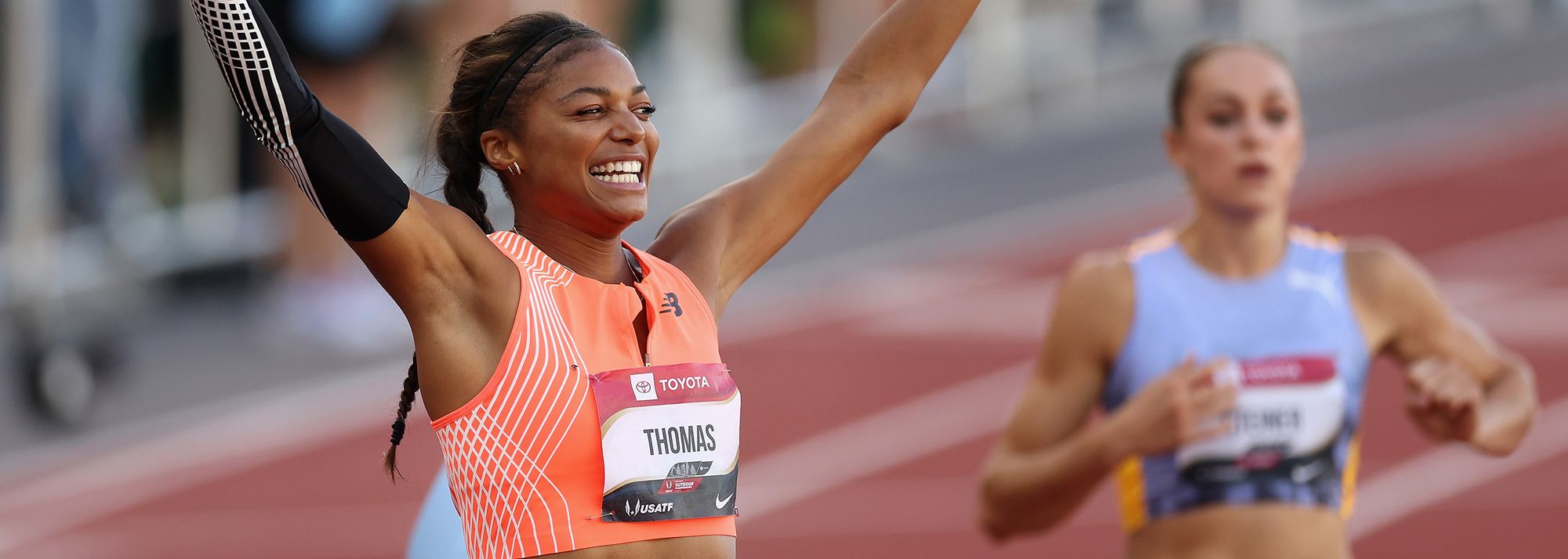 Thomas’ time proves that she has made a strong recovery since last year. The Olympic bronze medallist suffered a hamstring tear two weeks before the 2022 US trials and although she pushed through the pain to compete, the injury ultimately cost her a chance at another international medal.
