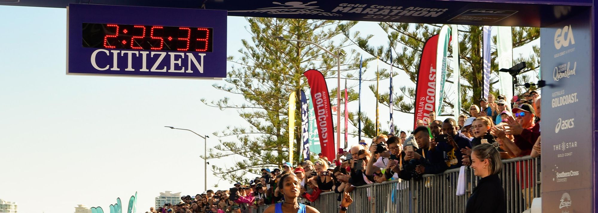 Noguchi’s winning time was an improvement of just over two minutes on his previous best and the fourth sub-2:09 on the Gold Coast. He missed the race record set by Mungara two years ago by just 12 seconds and slots in at number four on the all-comer’s top 10.