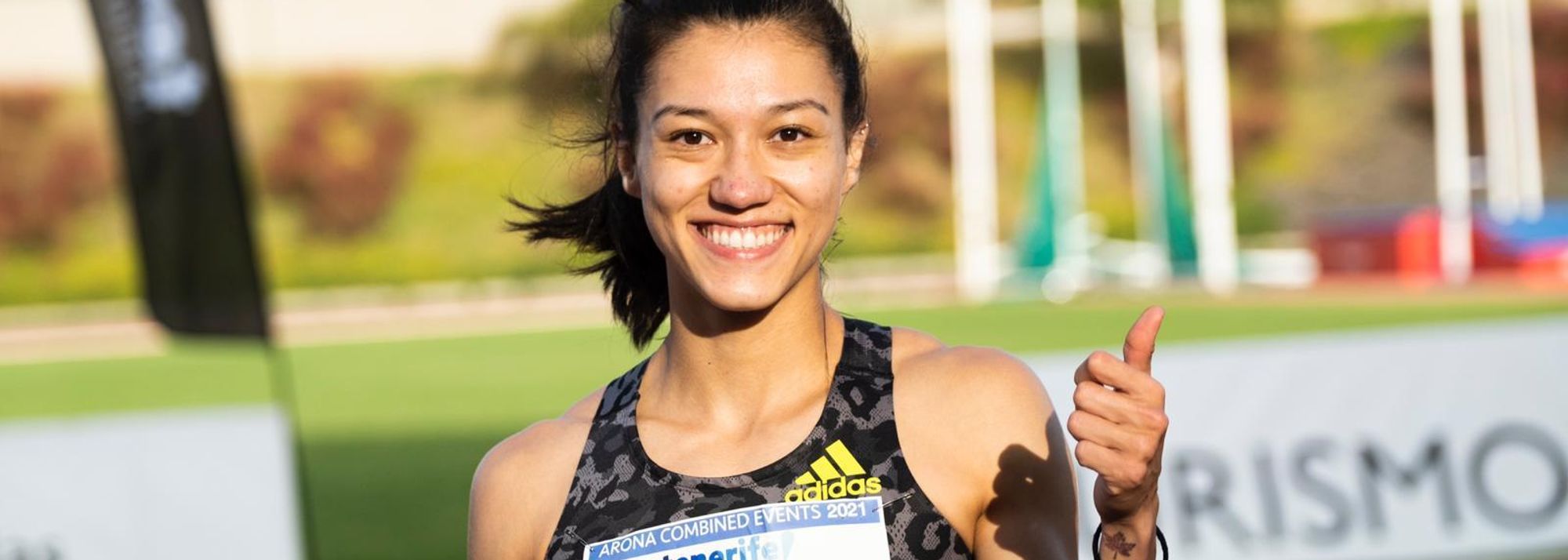 Zheng Ninali after winning the heptathlon in Arona (© Organisers)