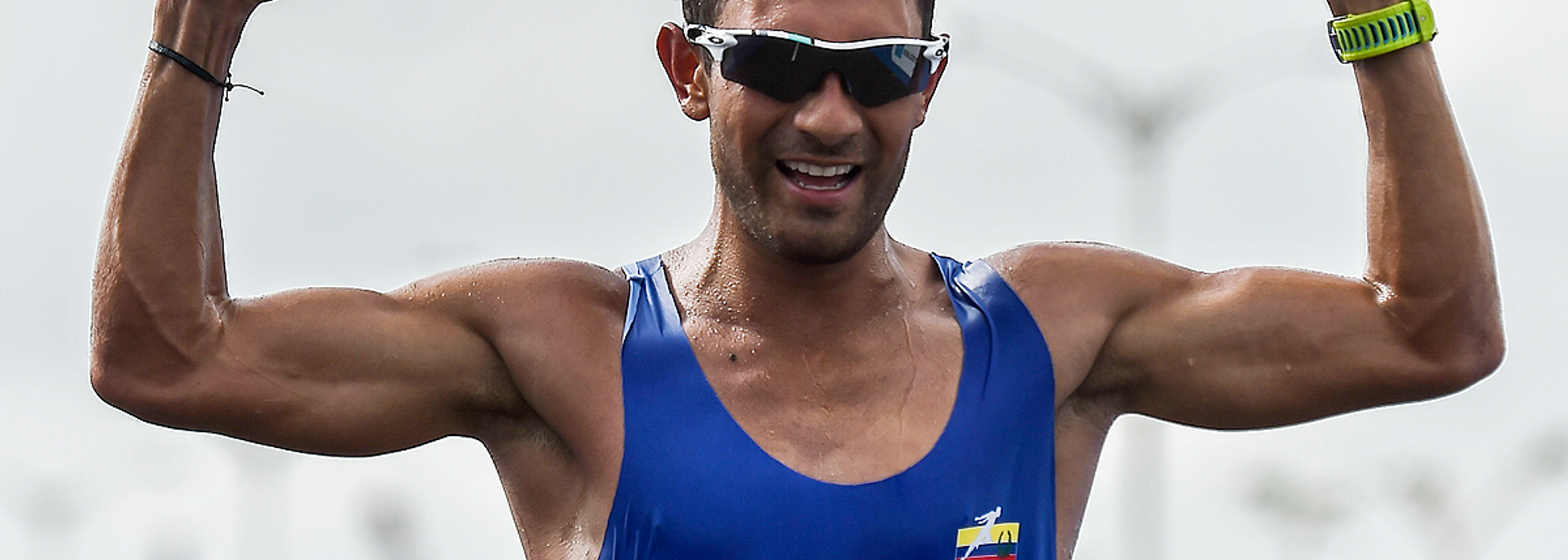 Colombian race walker Eider Arevalo celebrates his victory (© AFP / Getty Images)