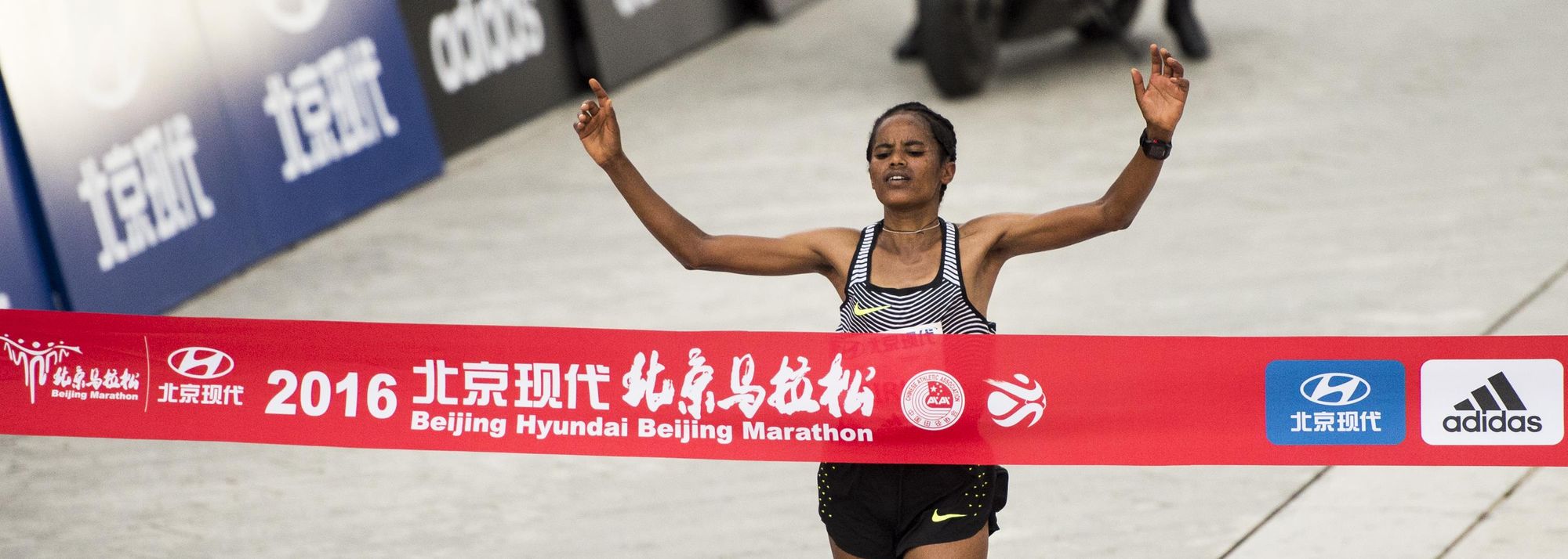 Meseret Mengistu wins the 2016 Beijing Marathon (© organisers)