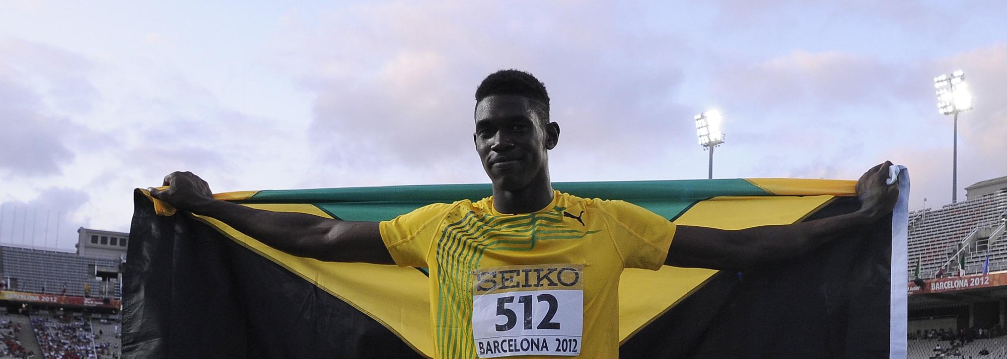 Fedrick Dacres after winning the discus at the IAAF World Junior Championships in Barcelona (© Getty Images)
