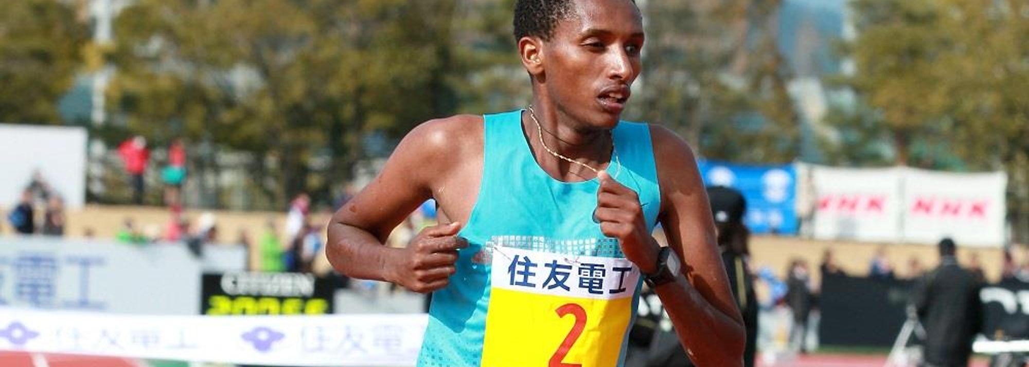 Bazu Worku winning at the 2014 Lake Biwa Marathon (© Victah Sailor / organisers)