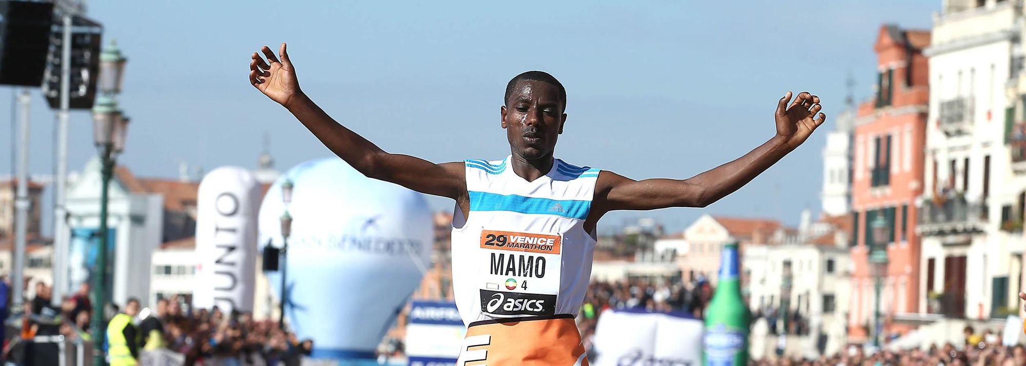 Behailu Mamo winning at the 2014 Venice Marathon (© Giancarlo Colombo)