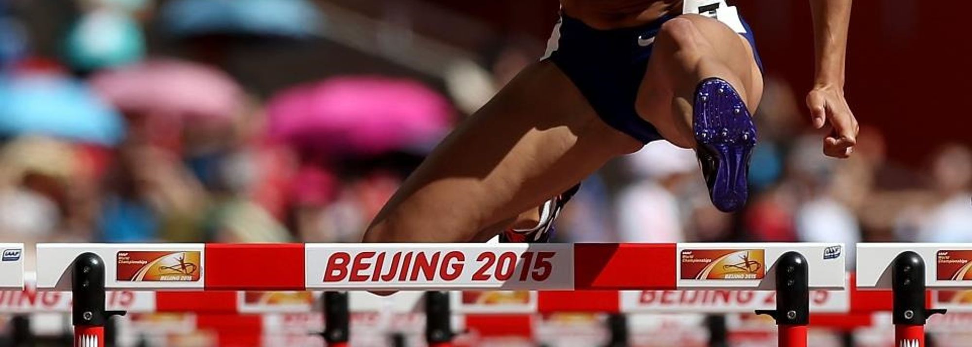 Jessica Ennis-Hill in the heptathlon 100m hurdles at the IAAF World Championships, Beijing 2015 (© Getty Images)