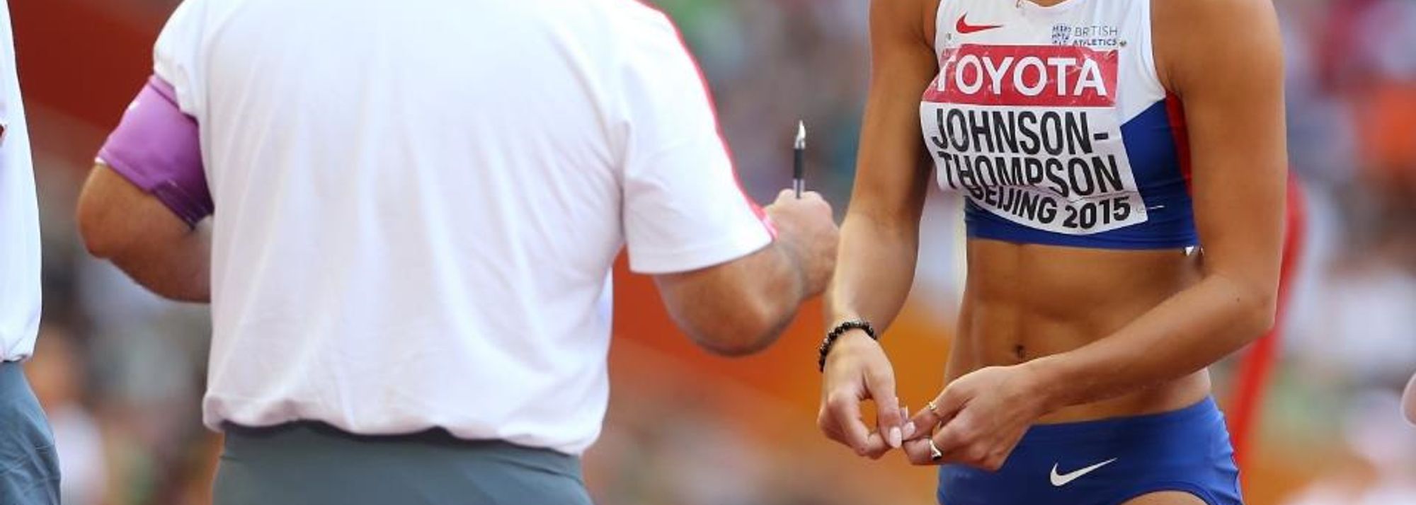 And it was not just that the 22-year-old fouled all of her jumps; they would have all been long enough to ensure a good position for her going into the last two events. The Briton’s first two jumps were clear fouls – 5.1cm over the plasticine on the first one and 6.2cm on the second. But the third one, also the longest jump of the competition in the region of 6.85m-6.90m, was a really close one.